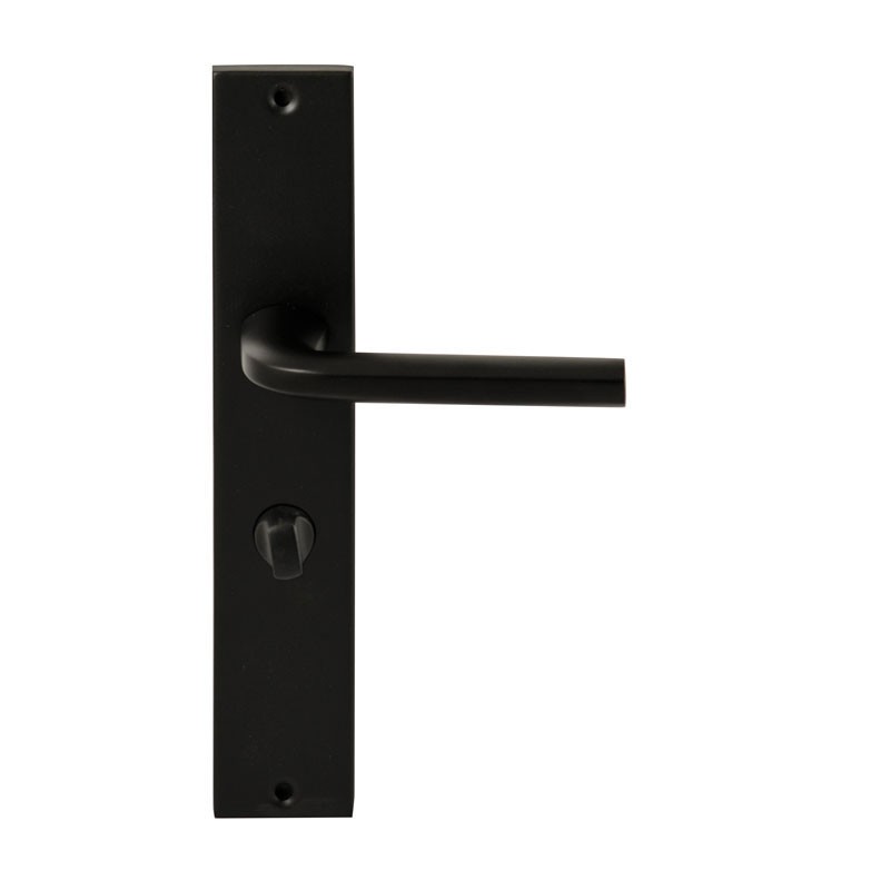 Een twintigtal moderne deurkrukken in RVS met zwarte poedercoating die vastgeveerd op een schild geleverd worden met een prettige prijs en hoogwaardige kwaliteit.