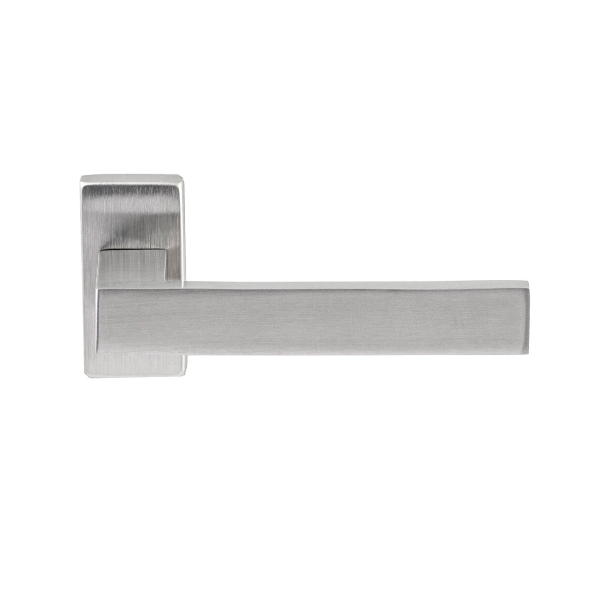 Een twintigtal moderne deurkrukken in RVS met geveerde rozetten, een prettige prijs en hoogwaardige kwaliteit.
