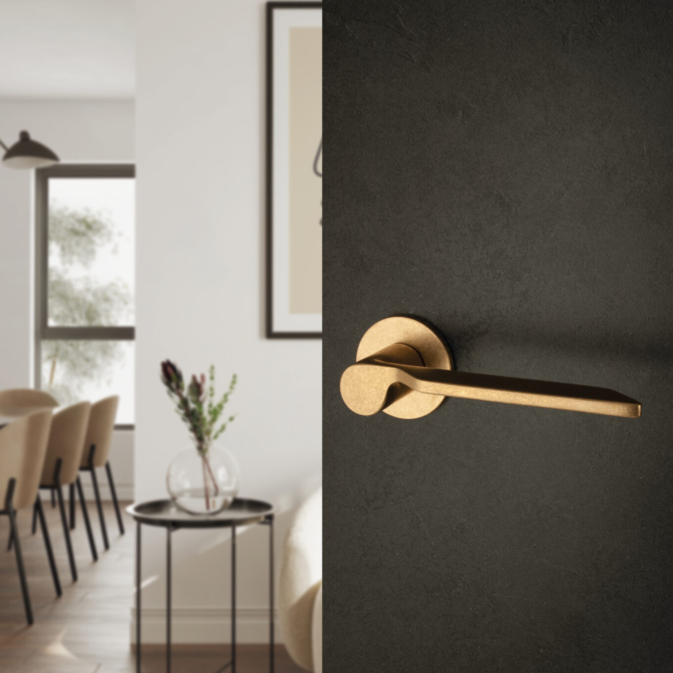 Het ontwerp van deurkruk Levante op rond FINE rozet getrommeld is het resultaat van een ontmoeting tussen een ontwerper en architect Maurizio Varratta, én van de wens van de architect om de schijnbaar eenvoudige maar complexe uitdaging van het ontwerpen van een handvat aan te gaan met de wens om een deurkruk te ontwerpen die functiebehoud en een architectonische vormgeving heeft.