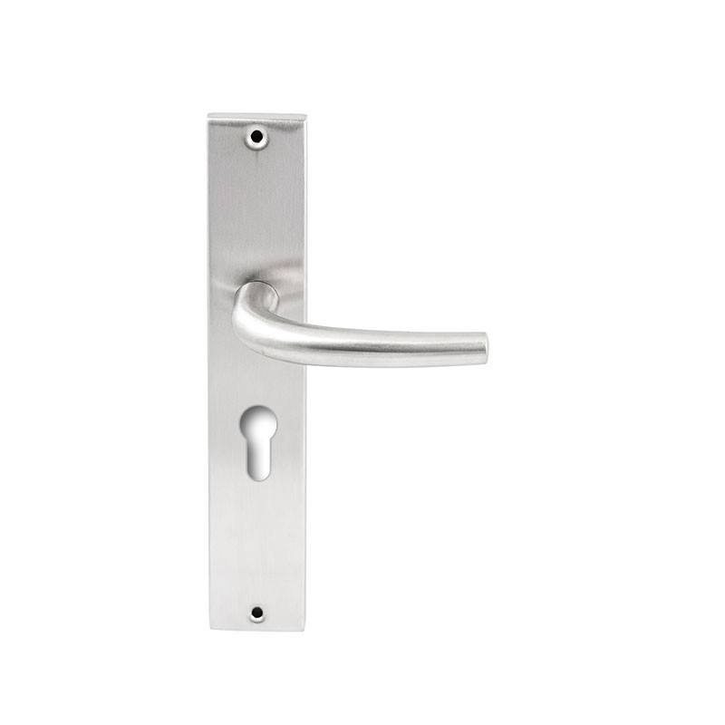 Een twintigtal moderne deurkrukken in RVS die vastgeveerd op een schild geleverd worden met een prettige prijs en hoogwaardige kwaliteit.