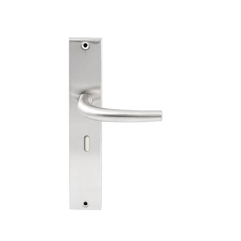 Een twintigtal moderne deurkrukken in RVS die vastgeveerd op een schild geleverd worden met een prettige prijs en hoogwaardige kwaliteit.