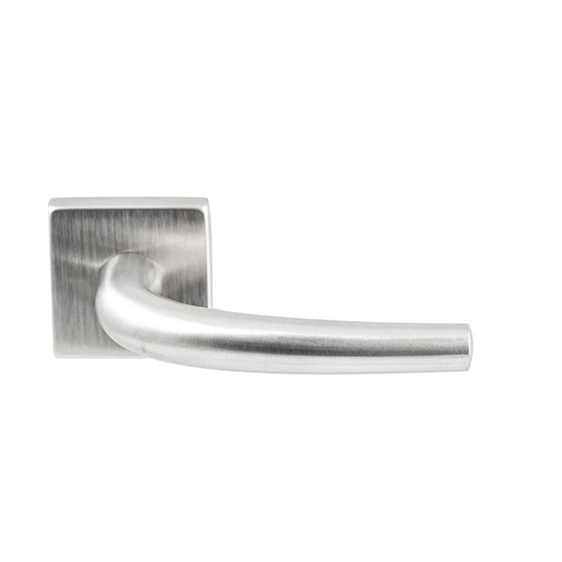 Een twintigtal moderne deurkrukken in RVS met geveerde rozetten, een prettige prijs en hoogwaardige kwaliteit.