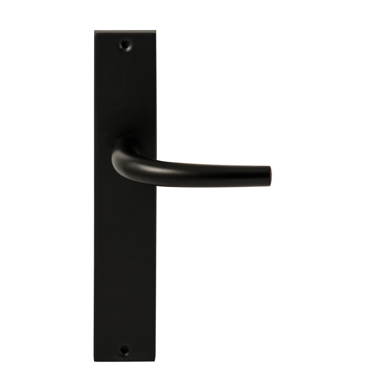 Een twintigtal moderne deurkrukken in RVS met zwarte poedercoating die vastgeveerd op een schild geleverd worden met een prettige prijs en hoogwaardige kwaliteit.