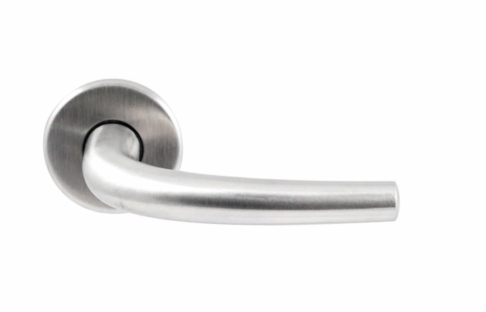 Deze massief RVS deurkruk is zwaar van stuk, maar fijn in model . Deze deurkruk wordt geleverd op dun rond rozet.