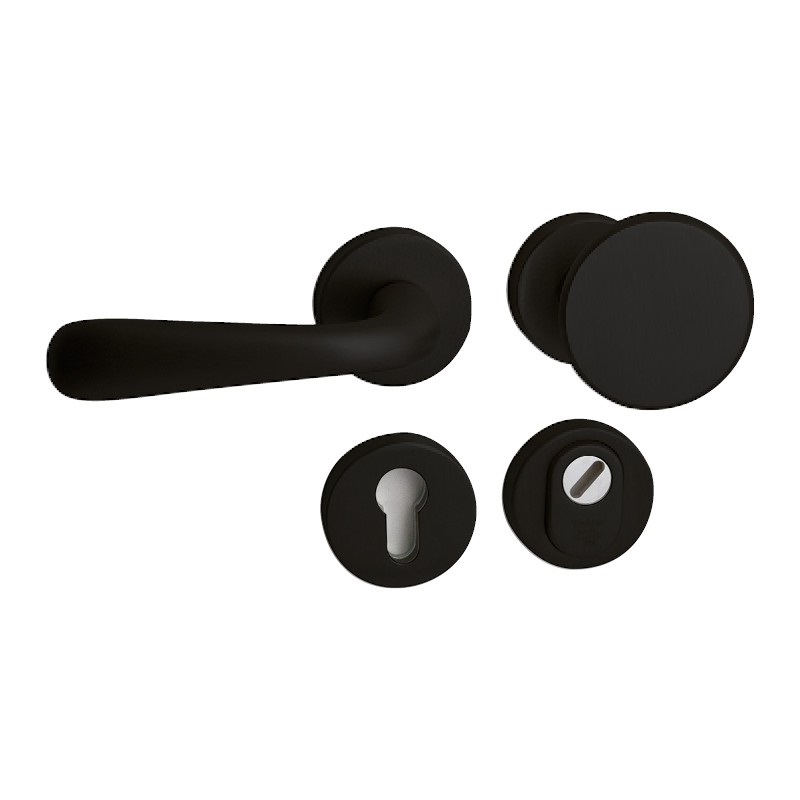 Voordeurgarnituur Monza zorgt voor een stijlvolle en SKG*** kerntrekbeveiliging van uw deur. De voordeur veiligheidsset wordt geleverd inclusief vaste knop en draaibare deurkruk.Deze set heeft ook de mogelijkheid om gemonteerd te worden in situatie met de cilinder boven de knop/kruk. De binnenkruk dient separaat uitgezocht te worden.