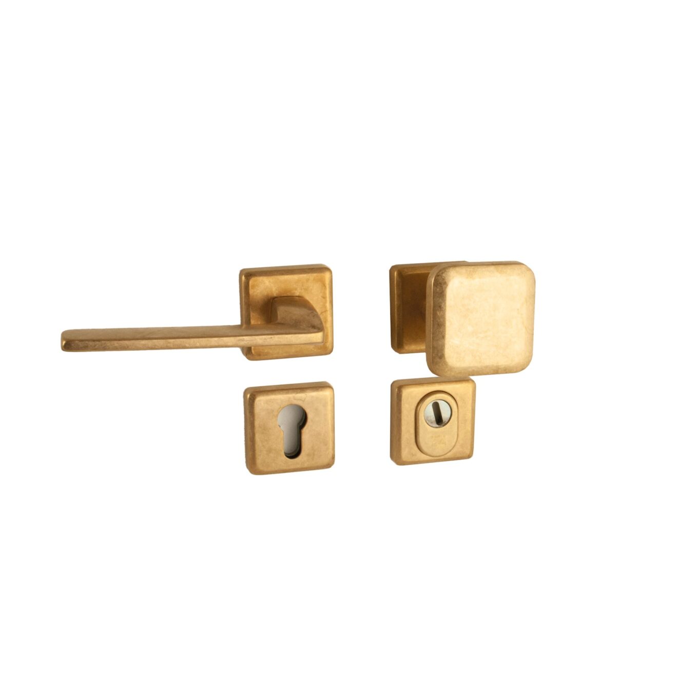 Het voordeurgarnituur komt uit ons Mariani assortiment. Het garnituur is uitgevoerd in getrommeld messing en daarmee onze puurste afwerking. Deze set wordt na productie getrommeld om een stoer uiterlijk te verkrijgen. Omdat wij verder niets met dit product doen is het een veilig product. Een krasje meer of minder is dan ook geen enkel probleem. Na verloop van tijd zal dit product (omdat het ongelakt is) wat donkerder worden.