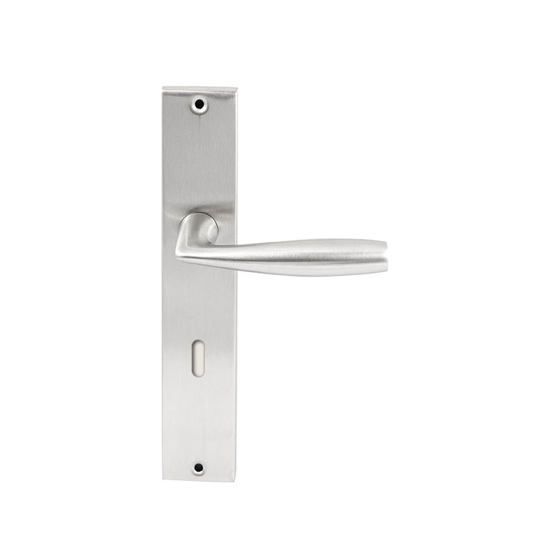 Een twintigtal moderne deurkrukken in RVS die vastgeveerd op een schild geleverd worden met een prettige prijs en hoogwaardige kwaliteit.