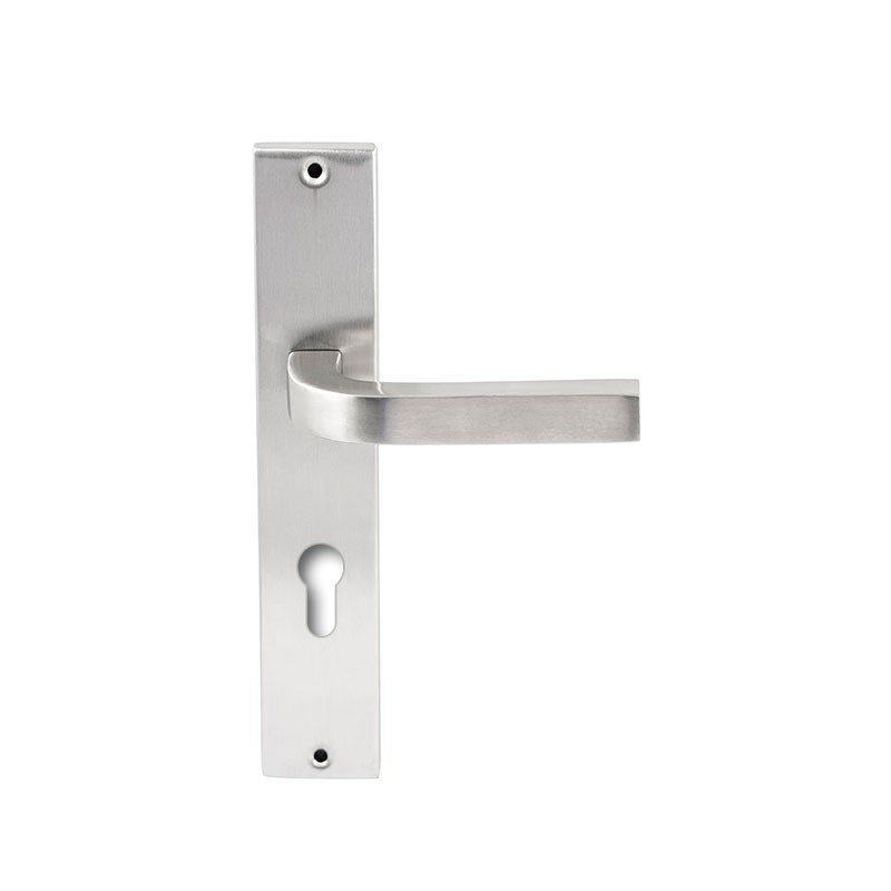 Een twintigtal moderne deurkrukken in RVS die vastgeveerd op een schild geleverd worden met een prettige prijs en hoogwaardige kwaliteit.