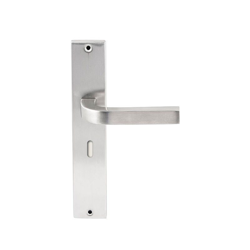 Een combinatie van vierkant en rond geeft deze strakke deurkruk een vriendelijk uiterlijk.