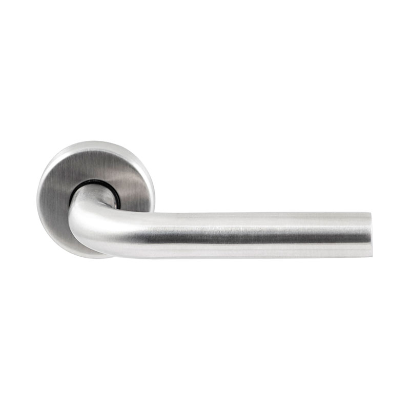 Een twintigtal moderne deurkrukken in RVS met geveerde rozetten, een prettige prijs en hoogwaardige kwaliteit.