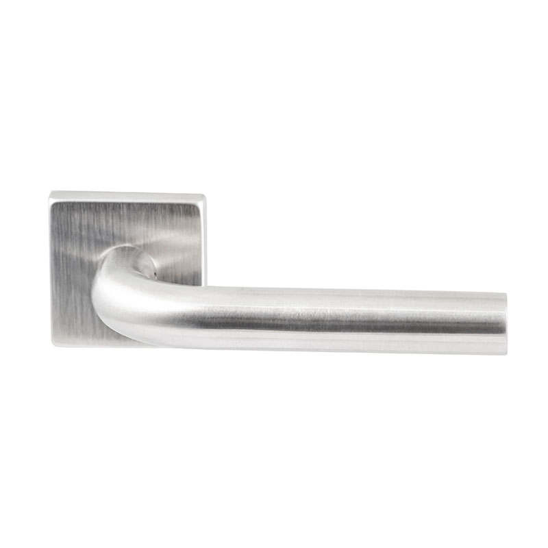 Een twintigtal moderne deurkrukken in RVS met geveerde rozetten, een prettige prijs en hoogwaardige kwaliteit.