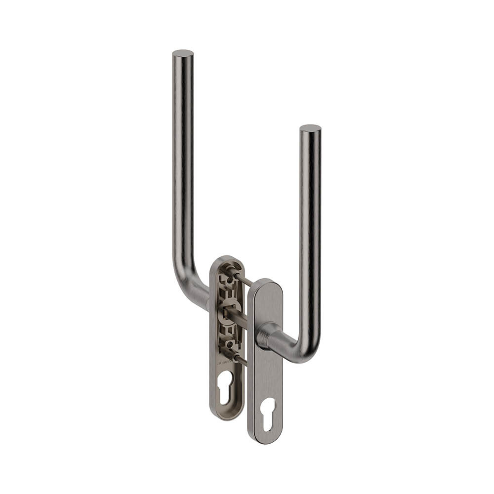 Dit paar grepen is te gebruiken voor een hefschuifpui welke aan beide zijdes afsluitbaar is met een cilinder.