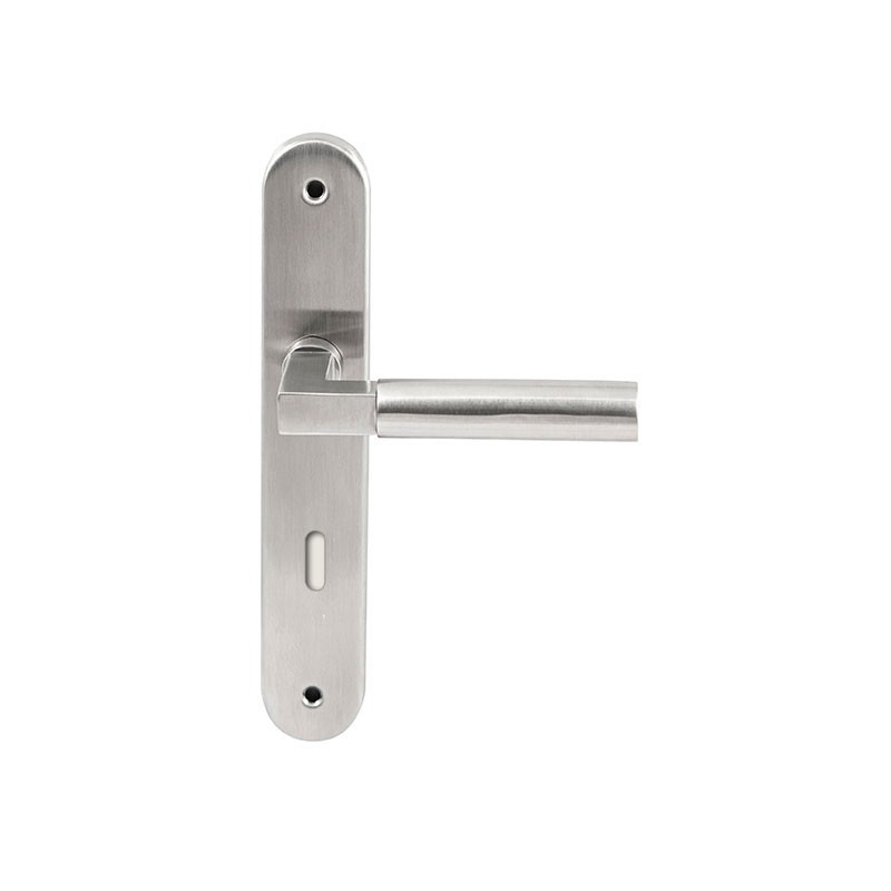 Een twintigtal moderne deurkrukken in RVS die vastgeveerd op een schild geleverd worden met een prettige prijs en hoogwaardige kwaliteit.