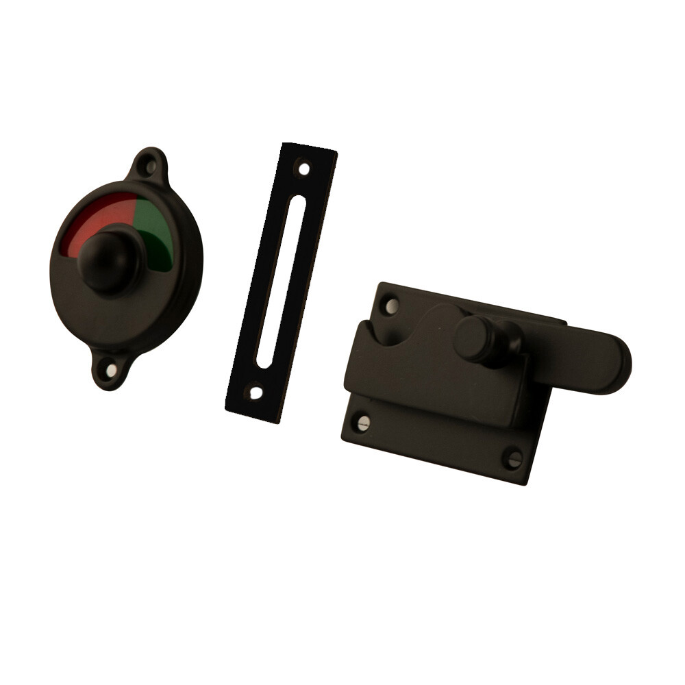 Een WC-overslag met toebehoren.Vrij/bezet plaatje op aanvraag.