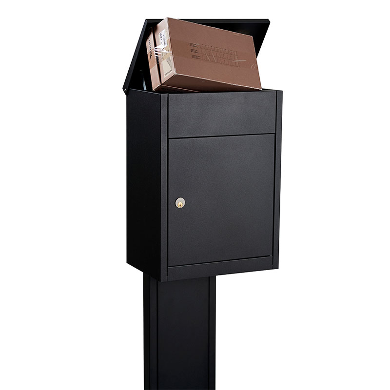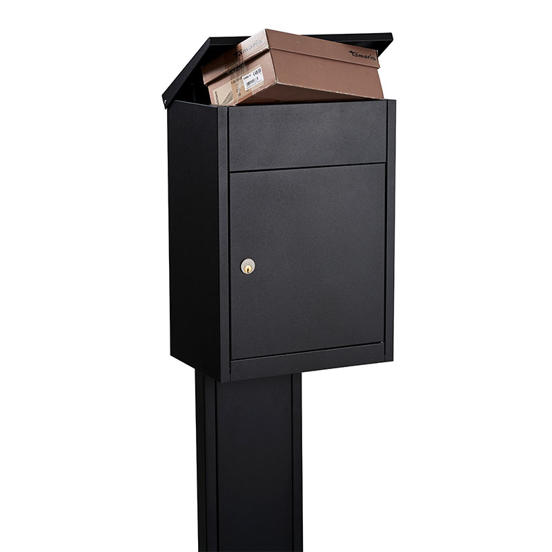 De solide pakket- en brievenbus is gemaakt van gegalvaniseerd staal, waarna deze is behandeld met een sterke poedercoating in de kleur zwart (RAL 9011). Deze brievenbus is geschikt voor montage aan de wand, op statief of aan een hek. De brievenbus wordt geleverd met een 5-pins Ruko slot met 2 sleutels.