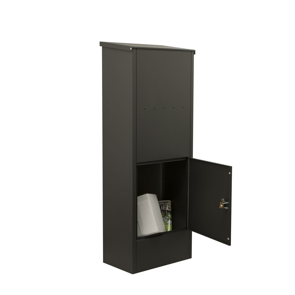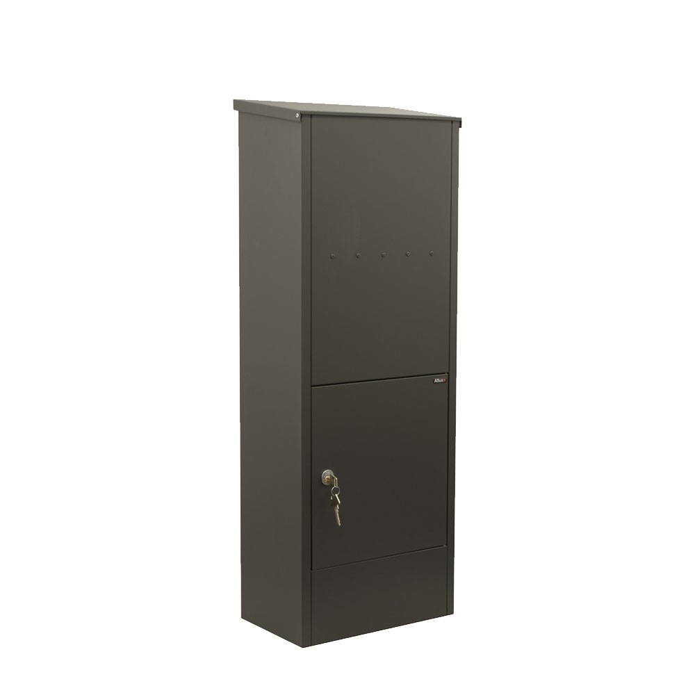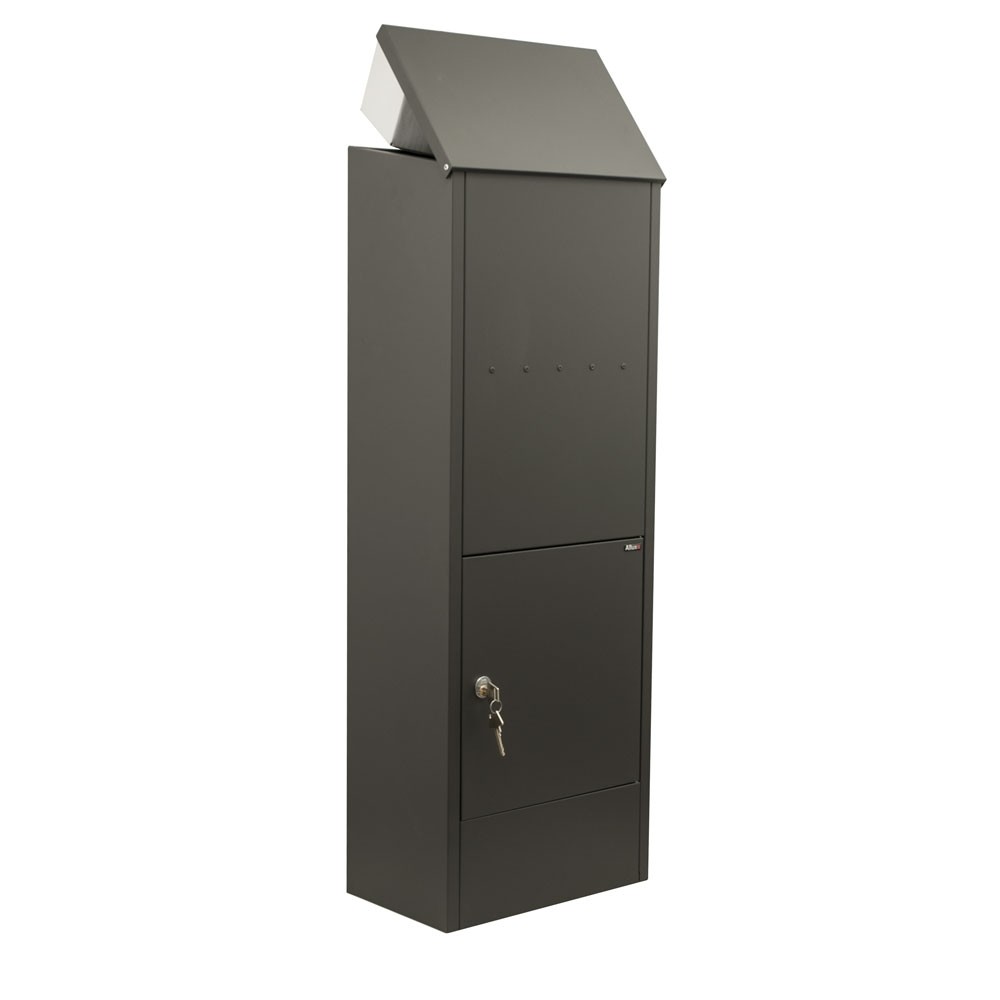 Pakketkast Allux 600 achteruitname antraciet is dé oplossing voor het ontvangen van post én pakketjes. Door de grote boveninworp kan het pakketten ontvangen tot een formaat van 100x260x280mm.
