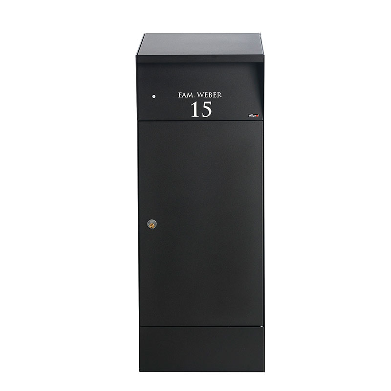 De design pakketzuil Allux Bjørn zwart - ontworpen door Christian Bjørn - is onze grootste pakketbrievenbus uit het assortiment. Met een bovenklep voorzien van luchtveer en ruimte voor brieven en pakketten tot een maximale grootte van 155x300x350mm. Er is genoeg ruimte voor naam en huisnummer. Dit, samen met een mooie ruimte voor het plaatsen van naam en huisnummer, is een absolute eye-catcher op de oprit.