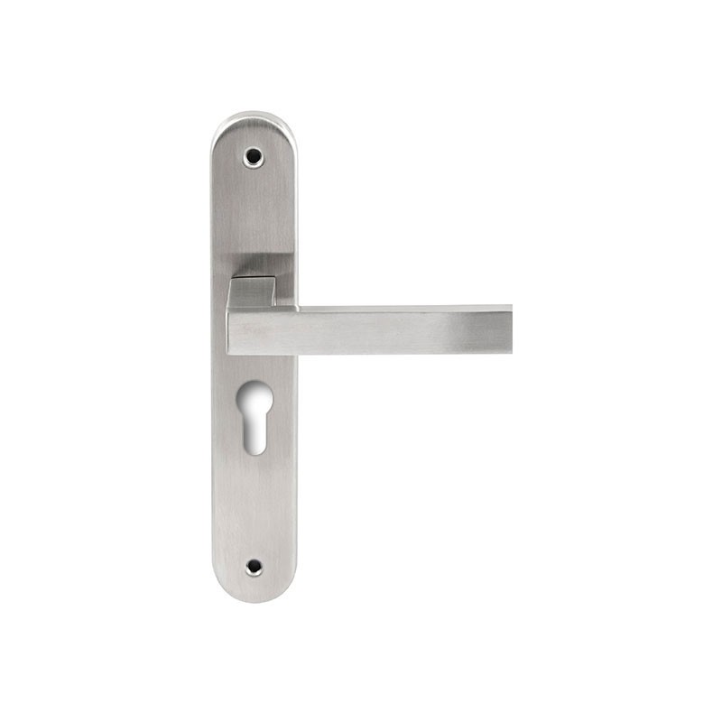 Een twintigtal moderne deurkrukken in RVS die vastgeveerd op een schild geleverd worden met een prettige prijs en hoogwaardige kwaliteit.