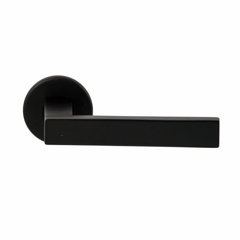 De massief uitgevoerde variant van het standaard vierkant buismodel. Door het lijntje in de greep straalt deze kruk net wat meer design uit. Deze deurkruk wordt geleverd op dun rond rozet.