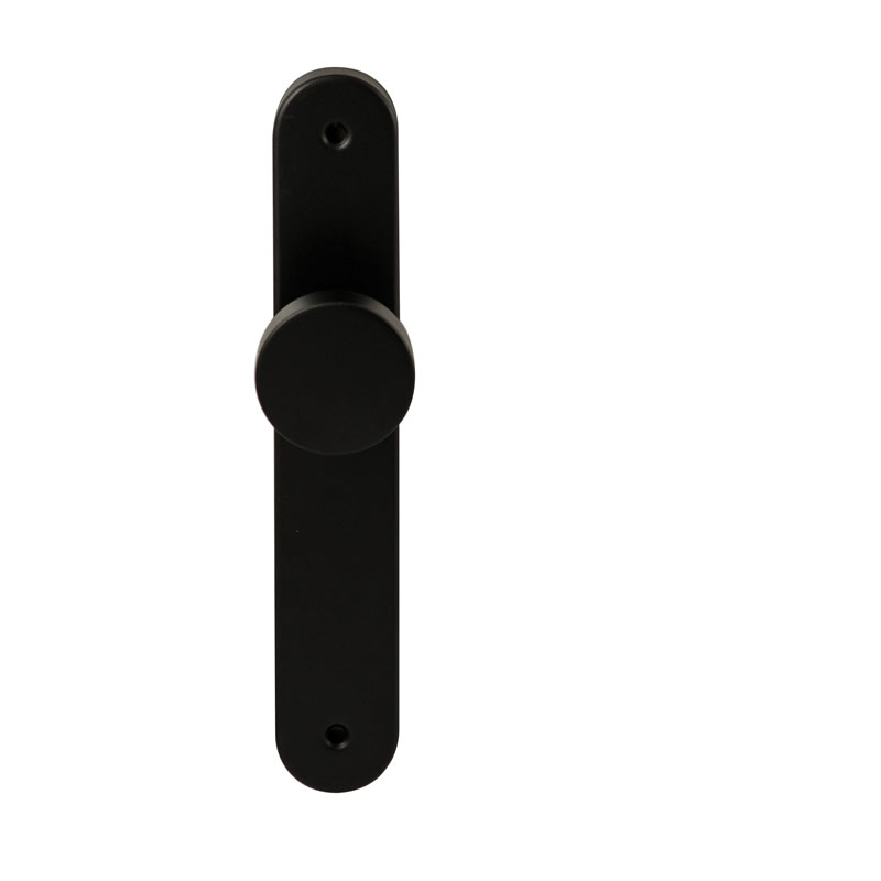 Een twintigtal moderne knopkrukken in RVS met zwarte poedercoating die vastgeveerd op een schild geleverd worden met een prettige prijs en hoogwaardige kwaliteit.