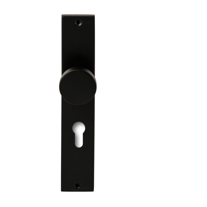 Een twintigtal moderne knopkrukken in RVS met zwarte poedercoating die vastgeveerd op een schild geleverd worden met een prettige prijs en hoogwaardige kwaliteit.