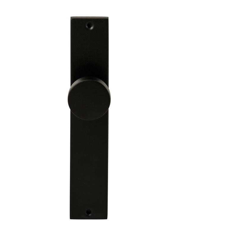 Een twintigtal moderne knopkrukken in RVS met zwarte poedercoating die vastgeveerd op een schild geleverd worden met een prettige prijs en hoogwaardige kwaliteit.