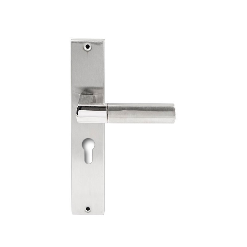 Een in twee finishes afgewerkte deurkruk die glans en mat met elkaar verbind in een mooie robuuste kruk.