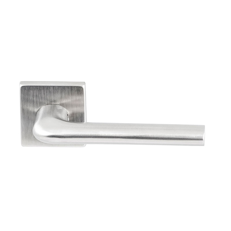Een twintigtal moderne deurkrukken in RVS met geveerde rozetten, een prettige prijs en hoogwaardige kwaliteit.