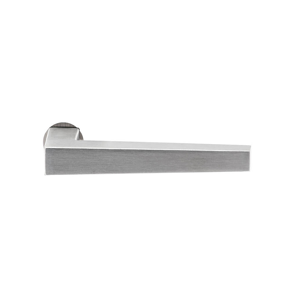 Deze deurkruk is onderdeel van Shuffle Serie. Een twintigtal moderne deurkrukken in RVS met een prettige prijs en hoogwaardige kwaliteit.Een massieve kruk met een taps vierkante vorm. De bovenzijde is bijna vlak, de onderzijde loopt schuin omhoog. Hoewel onze krukken veelal geveerd zijn, heb je met de sloten op termijn altijd het risico dat een kruk licht gaat hangen.