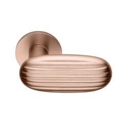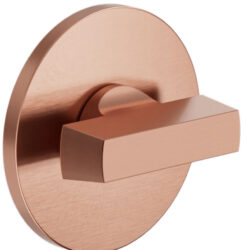 Het massieve rozet is uitgevoerd in PVD copper; een messing rozet met een satijn koperen afwerking. Een charmant beeld waarbij de kleur van koper de handgrepen op rozet verrast en versterkt in huiselijke interieurs met een elegant karakter en krachtige identiteit. Afwerking gegarandeerd voor 10 jaar.