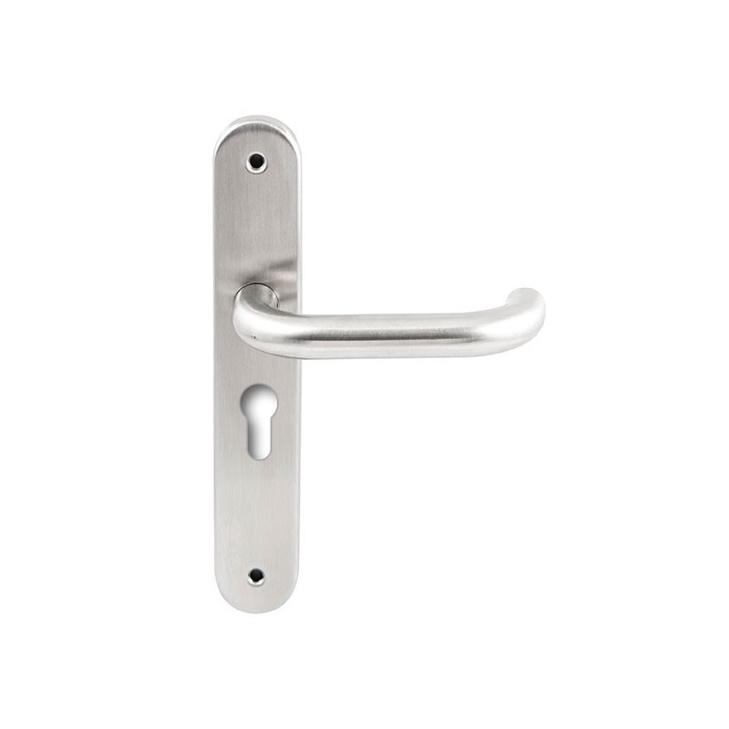 Een twintigtal moderne deurkrukken in RVS die vastgeveerd op een schild geleverd worden met een prettige prijs en hoogwaardige kwaliteit.