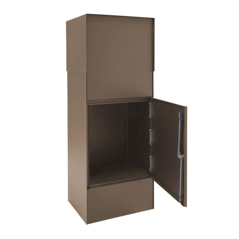 Deze uitnameklep aan de achterzijde is voorzien van een sterk slot met aan de achterzijde een driepuntssluiting die je pakket extra bescherming biedt. Om deze pakketkast te monteren zijn er onderin de kast 4 gaten, waarvoor de montage is meegeleverd in de verpakking. Gezien de grootte én het gewicht van deze brievenbus, leveren we deze altijd aan op een (halve) pallet.