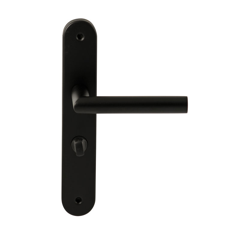 Een twintigtal moderne deurkrukken in RVS met zwarte poedercoating die vastgeveerd op een schild geleverd worden met een prettige prijs en hoogwaardige kwaliteit. Voorzien van een WC-stift van 8mm en uitsparing op 63mm van het krukgat.