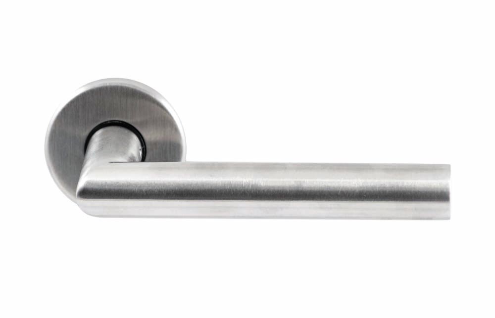 De deurkruk Toledo op dun rond rozet inox wordt geleverd op een ongeveerd dun rond rozet. Dit rozet is universeel te monteren.