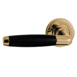 Een paar deurkrukken, 2 gatdelen op rozet + losse stift & bevestigingsmateriaal