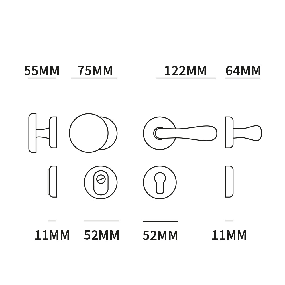 Bij het voordeurgarnituur Monza getrommeld wordt de vaste knop Basel aan de buitenzijde meegeleverd in deze set, de binnenkruk dient separaat uitgezocht te worden. Op onze afbeeldingen gebruiken wij standaard onze signatuur deurkruk Silvia. Echter kunt u ieder model hierop toepassen.
